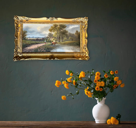Antique Oil Painting Etty Horton Late 19th Century Landscape With Horse and Figures Gilt Framed Listed Artist Royal Academy Exhibited