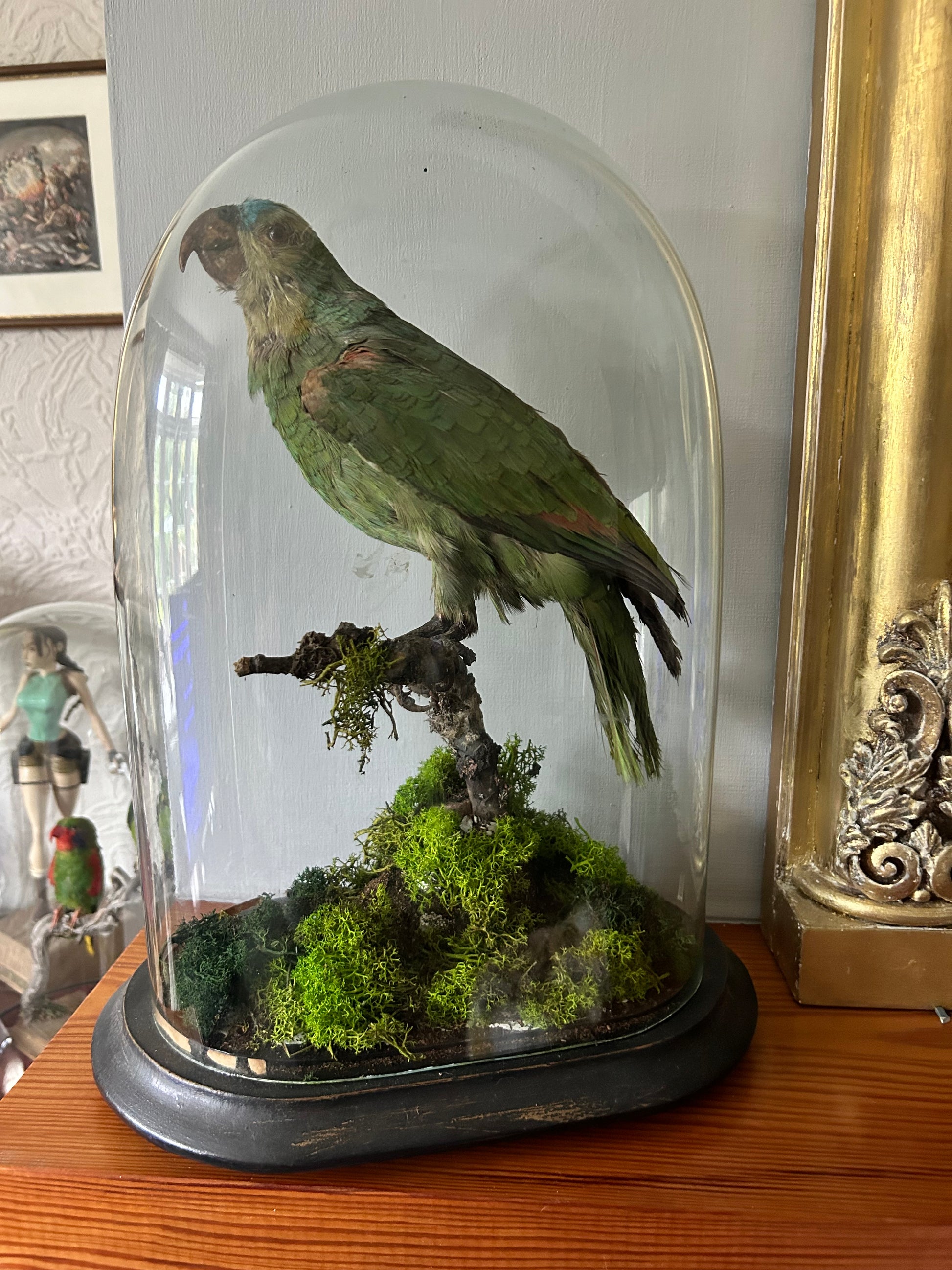 Victorian Taxidermy Amazon Parrot In Glass Dome Rare Antique Taxidermy Bird Display