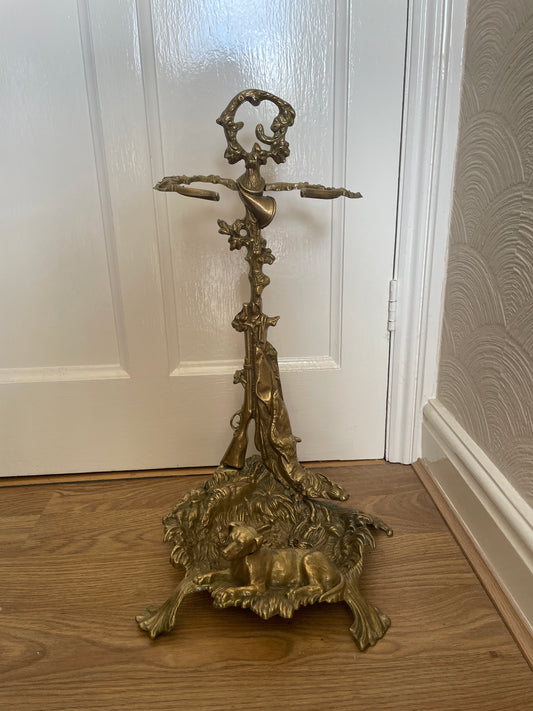 Antique Brass Umbrella or Walking Stick Sound With a Dog and Game Hunting Theme