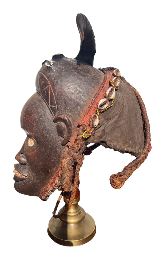 Antique African Tribal Mask Nigeria Yoruba Late 19th Early 20th Century . With Beads and Cowries Stunning Piece of Cultural History